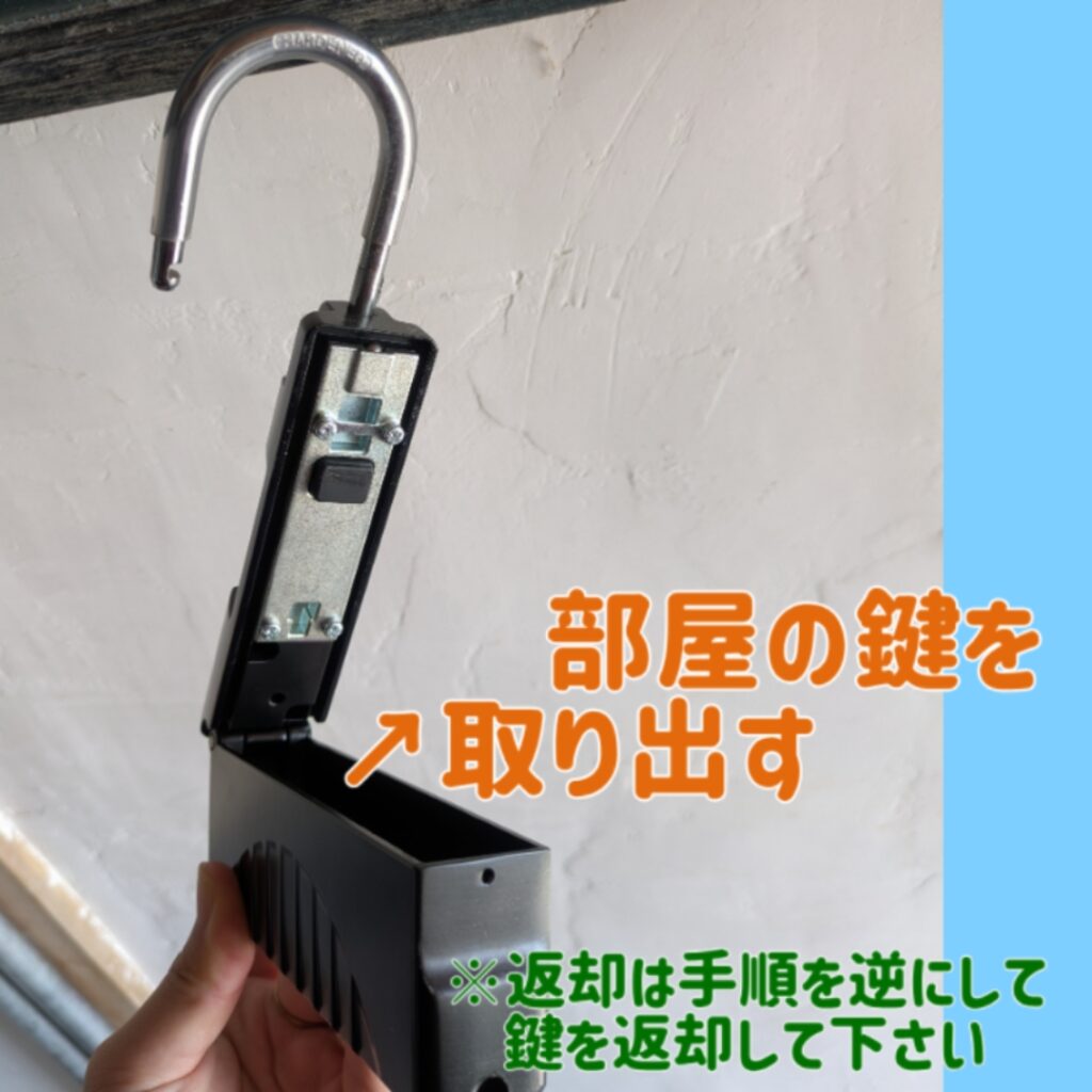 前日に届いたキーボックスの暗証番号を回して合わせてください。